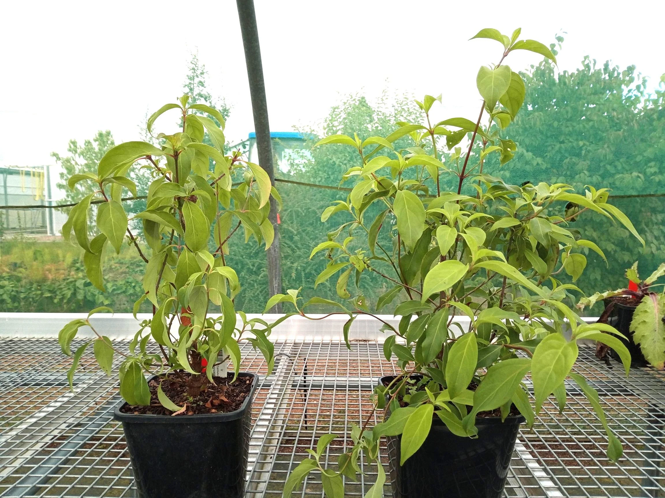 | Crataegus, Rosa and Berberis | Regular growth, remained covered in powdery mildew (these plants dislike being in pots - results are as expected). |